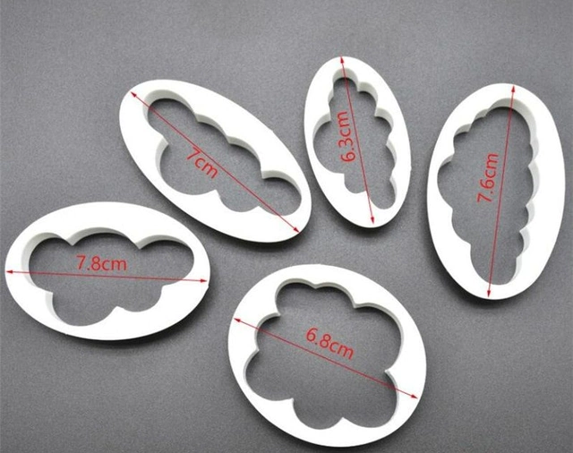 Kit contendo 5 tamanhos de cortadores de nuvens ,plástico resistente, lindas nuvens, tamanho aproximado 5 cm e 6 cm cada.